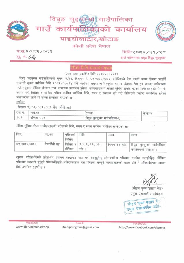 परीक्षा मिति तोकिएको सम्बन्धमा !(वैद्य)