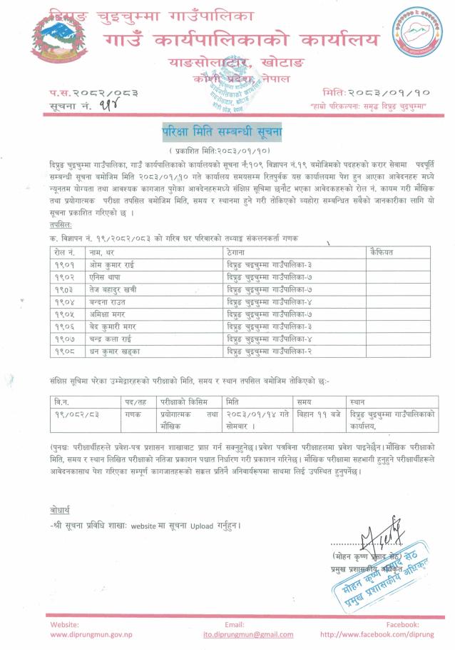 परीक्षा मिति सम्बन्धी सूचना !!(गणक)