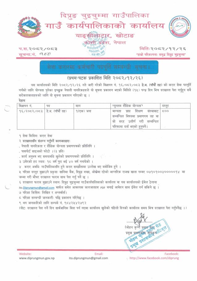 सेवा करारमा कर्मचरी पदपूर्ति सम्बन्धी सूचना !!!