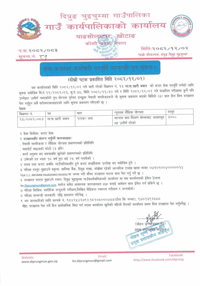 सेवा करारमा कर्मचारी पदपूर्ति सम्बन्धी पुनःसूचना !!!