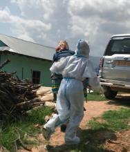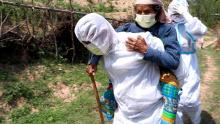 कोभिड-१९ संक्रमित ८८ वर्षिय सिकिस्त विरामीलाई आफ्नो पिठ्युँमा बोकी कोभिड अस्थायी अस्पताल लानु हुँदै गाउँपालिका अध्यक्ष ज्यू ।