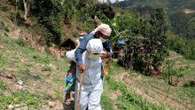 दिप्रुङ चुइचुम्मा गाउँपालिका वडा नं. १ खामडाँडाकी कोभिड-१९ संक्रमित सिकिस्त विरामी ८८ वर्षिय धन कुमारी अधिकारीलाई आफ्नो पिठ्युँमा बोकी कोभिड अस्थायी अस्पताल लानु हुँदै गाउँपालिका अध्यक्ष श्री भुपेन्द्र राई ज्यू ।