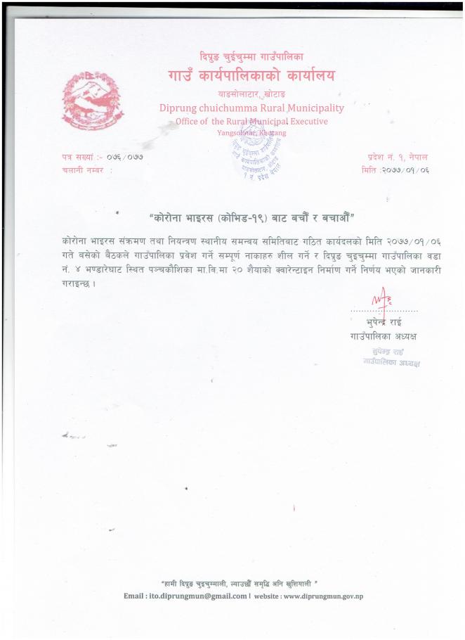 गाउँपालिका प्रवेश गर्ने सम्पूर्ण नाका शील गर्ने सम्बन्धि सूचना