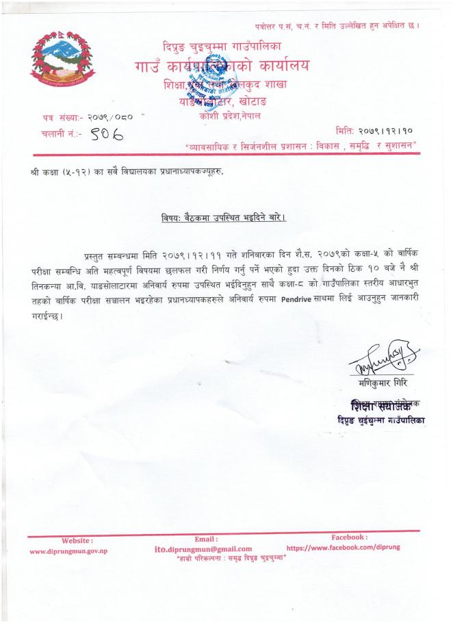 #जरूरी सूचना।। श्री कक्षा (५-१२) का सबै विद्यालयका प्रधानध्यापकज्यूहरू, विषयः वैठकमा अनिवार्य उपस्थित भइदिने बारे।