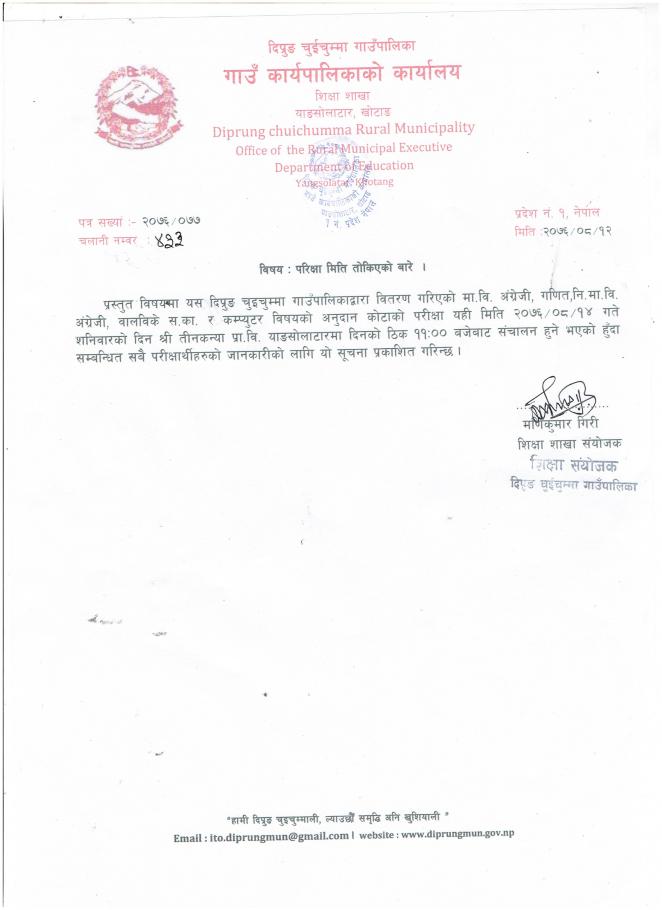 परिक्षा मिति तोकिएको सम्बन्धमा