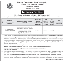 बोलपत्र आह्वान सम्बन्धि सूचना।। (Invitation for e-Bids!) प्रथम पटक प्रकाशित मितिः २०७९।११।१२ गते।
