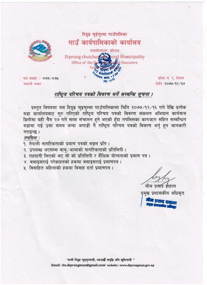 राष्ट्रिय परिचय पत्रको विवरण भर्ने सम्बन्धि अत्यन्त जरूरी सूचना ।