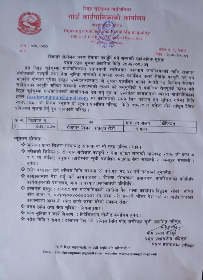 रोजगार संयोजक करार सेवामा पदपुर्ती गर्ने सम्बन्धि सार्वजनिक सूचना