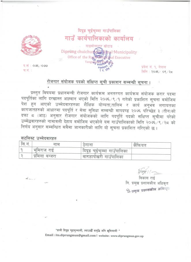 रोजगार संयोजक पदको संक्षिप्त सूची प्रकाशन सम्बन्धि सूचना