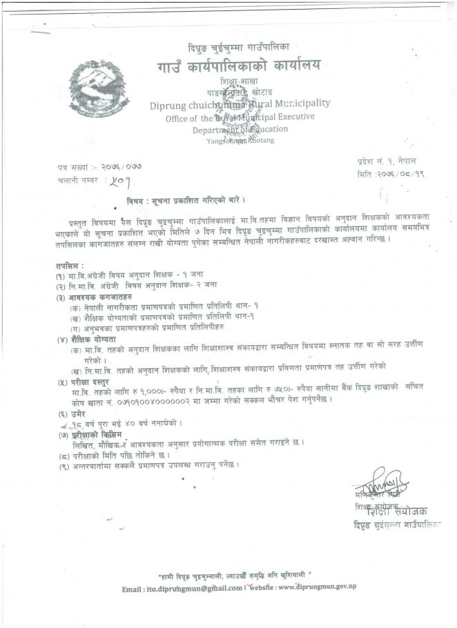 शिक्षक आवश्यकता सम्बन्धि सूचना