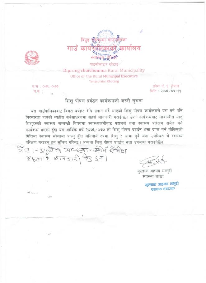 शिशु पोषण प्रबर्द्धन कार्यक्रमको जरूरी सूचना