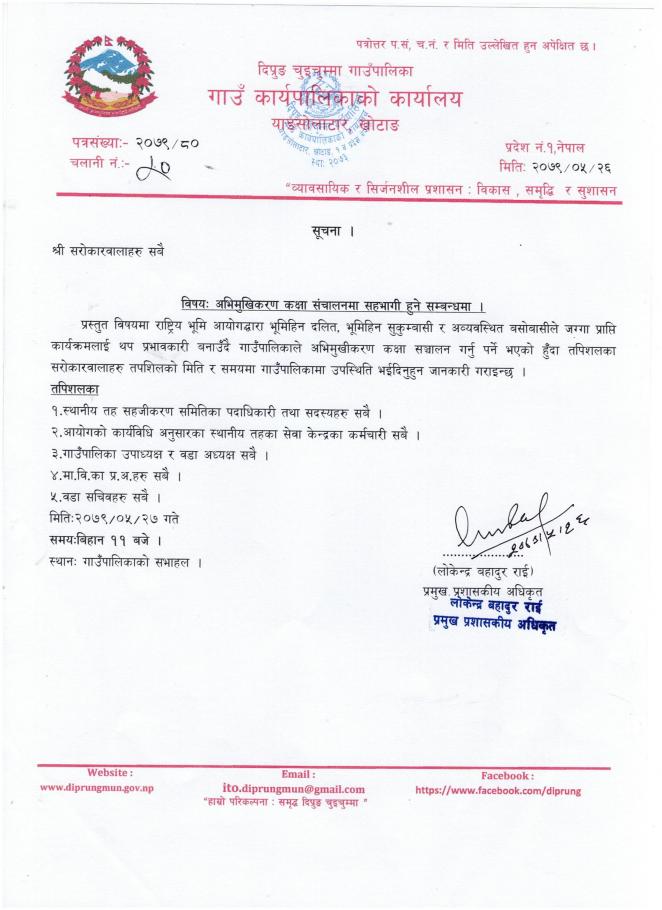 श्री सरोकारवालाहरु सबै अभिमुखीकरण कक्षा संचालन सम्बन्धमा ।।