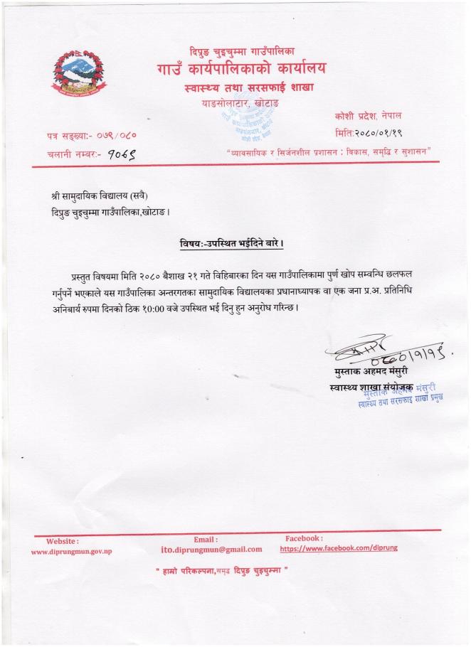 श्री सामुदायिक विद्यालयहरु (सबै), विषयः उपस्थित भईदिने बारे।।