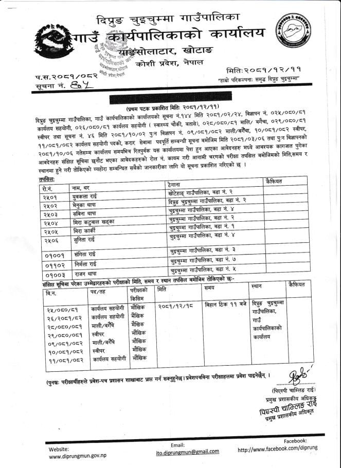 संक्षिप्त सूचि प्रकाशन गरी रोल नं. कायम गरिएको बारे सूचना !!