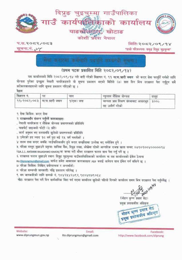 सेवा करारमा कर्मचारी पदपूर्ति सम्बन्धी सूचना !!!