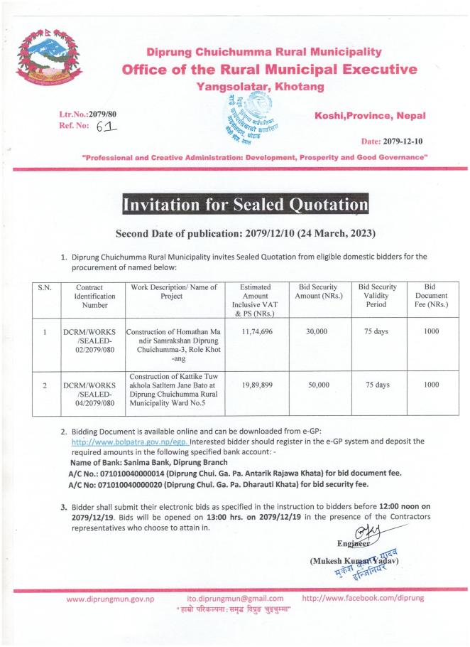 Invitation for Sealed Quotation (ISQ) Second time Publication Date 2079/12/10 (24 March,2023)