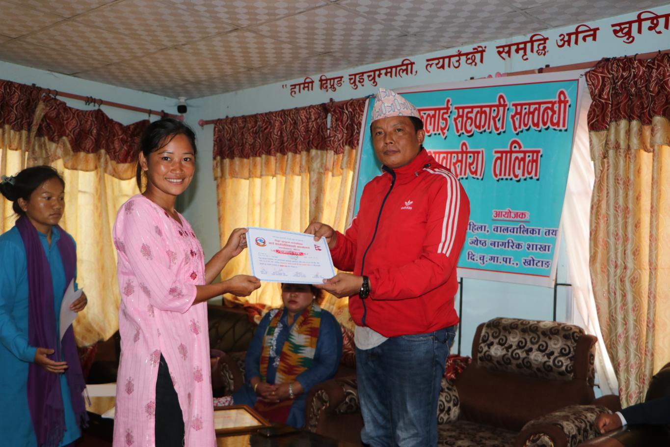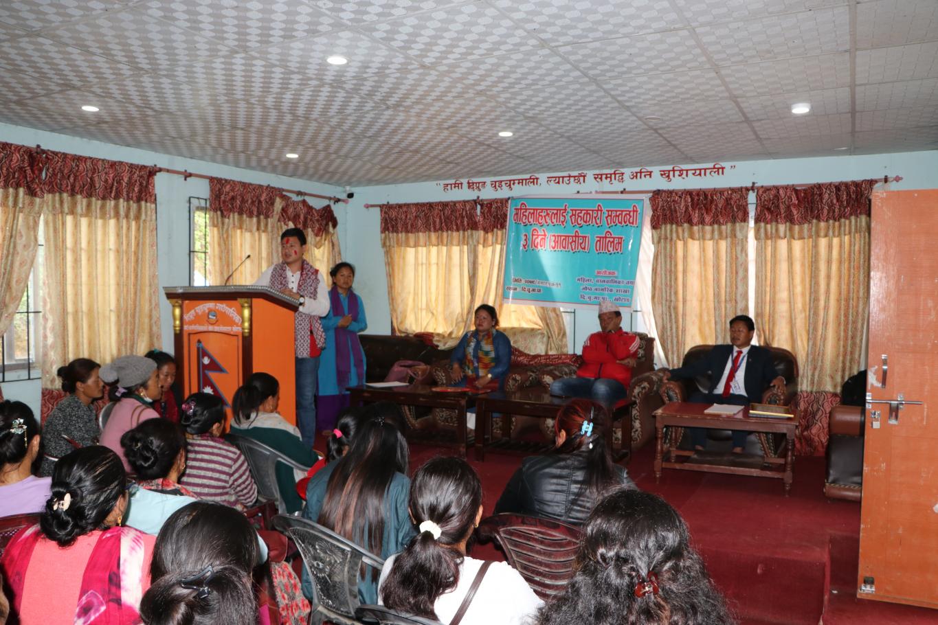 महिलाहरुलाई सहकारी सम्बन्धी तीन दिने आवासीय तालिमको समापन कार्यक्रम ।