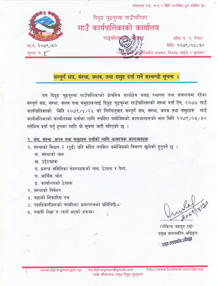 सम्पूर्ण संघ, संस्था, क्लव, तथा समुह दर्ता गर्ने सम्बन्धी सूचना ।
