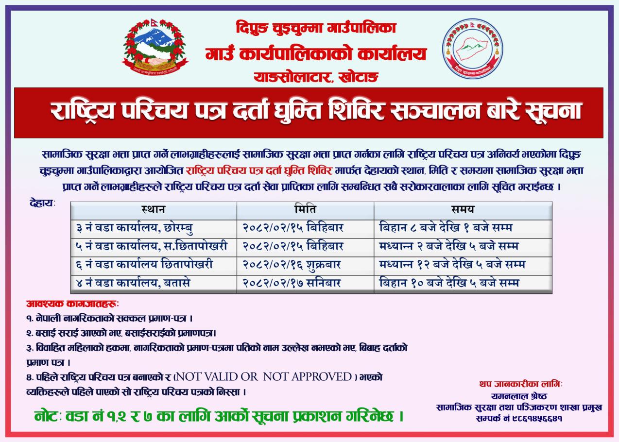 राष्ट्रिय परिचय पत्र दर्ता घुम्ति शिविर सम्बन्धी सूचना !!