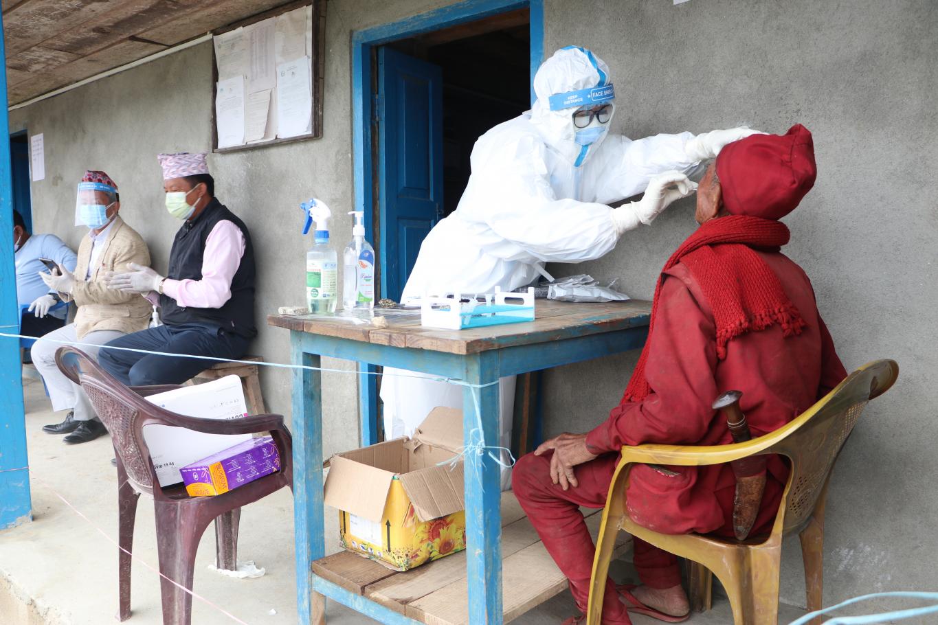 गाउँपालिका अध्यक्ष ज्यू सहितको स्वास्थ्य कर्मचारी टोलीले तेस्रो दिन गाउँ, टोल र बस्तीमा एन्टिजेन परीक्षण गर्दै