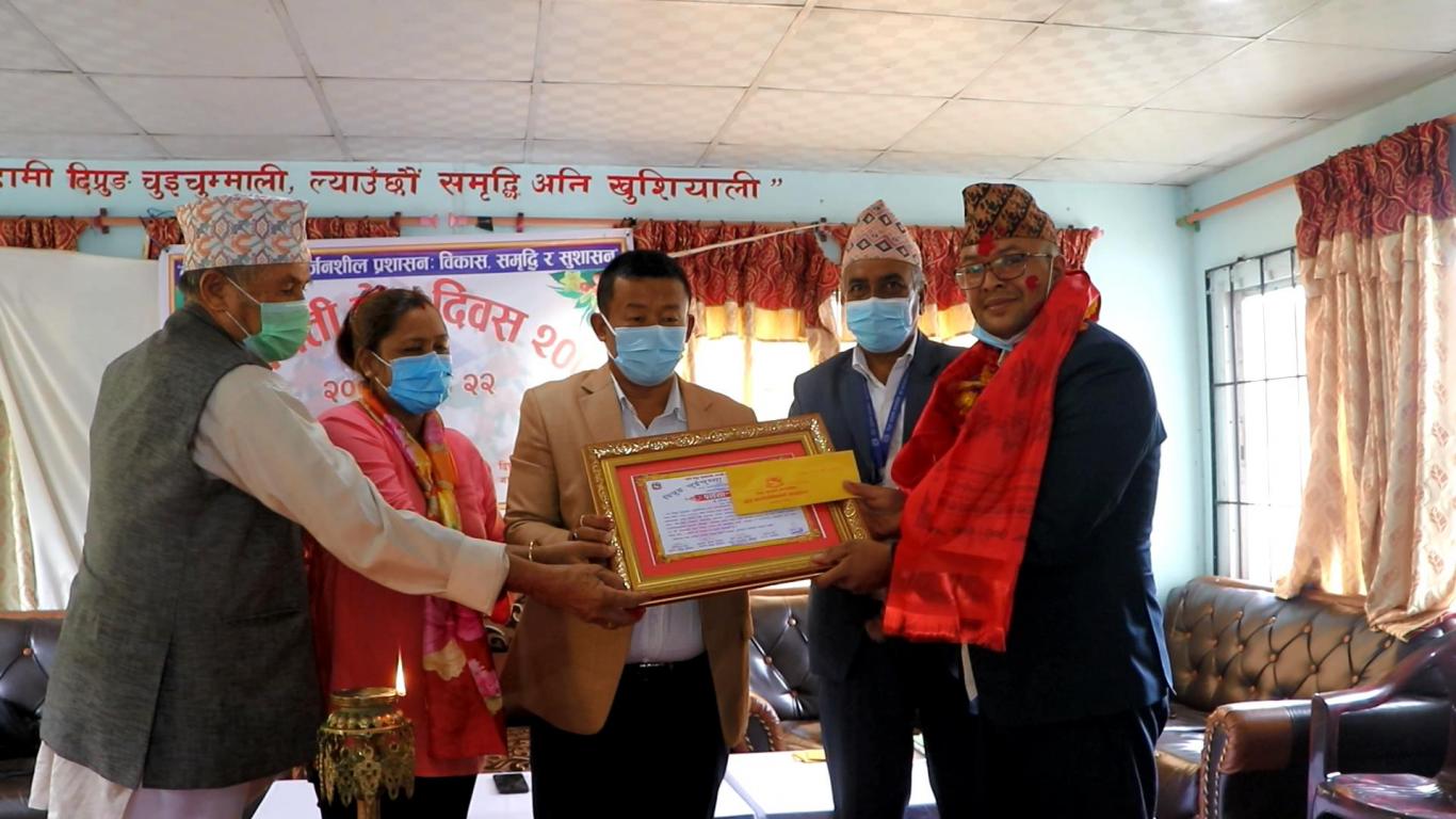 दिप्रुङ चुइचुम्मा गाउँपालिकामा १८ औँ निजामती सेवा दिवस २०७८ भव्यताका साथ मनाईएको छ । आज मिति २०७८ भाद्र २२ गते निजामती सेवा दिवसको अवसरमा गाउँपालिकाले निजामती सेवा तर्फको उत्कृष्ट कर्मचारीमा २०७५/०८/१७ गते देखि निरन्तर रूपमा प्रमुख प्रशासकीय अधिकृत पदमा रही यस गाउँपालिकाको समृद्धि,विकास र अग्रगमनका लागि आएका सबै प्रकारका आरोह अवरोहहरुको सामना गर्दै कार्यालयले प्रदान गर्ने सेवा प्रवाहमा अतुलनीय योगदान पुर्याउनु हुने श्री भीम प्रसाद दाहाल ज्यू सम्मानित हुनु भएको छ । त्यस्तै स्वर्गिय गाउँसभा सदस्य श्री नारायण प्रसाद श्रेष्ठ स्मृति पुरस्कार अन्तर्गत अस्थायी कोभिड अस्पताल याम्खामा कार्यरत ल्याव असिस्टेन्ट श्री सविना तामाङ ज्यू र वडा सचिव श्री सञ्जिब आचार्य ज्यू उत्कृष्ट कर्मचारीको रुपमा सम्मानित हुनुभएको छ। यस अवसरमा गाउँपालिकाद्वारा आयोजित ब्याडमिन्टन खेलमा पुरुष तर्फ गाउँपालिका कर्मचारी प्रथम, प्रहरी चौकी दिप्रुङ चुइचुम्मा द्वितीय भएको छ भने महिला तर्फ प्रथम स्वास्थ्य चौकि छोरम्बु, द्वितीय कोभिड अस्थायी अस्पताल याम्खा भएको छ । प्रथमलाई नगद ५ हजार र ट्रफी, द्वितीयलाई नगद ३ हजार र ट्रफी प्रदान गरिएको छ । पुरुष तर्फ १० टिम र महिला तर्फ ६ टिमको सहभागिता रहेको थियो ।