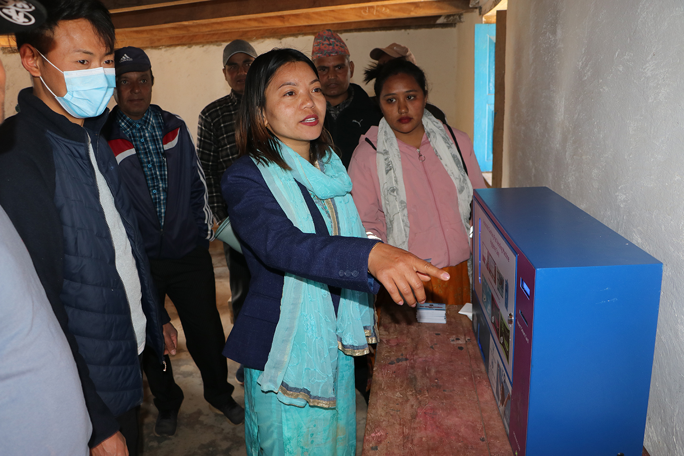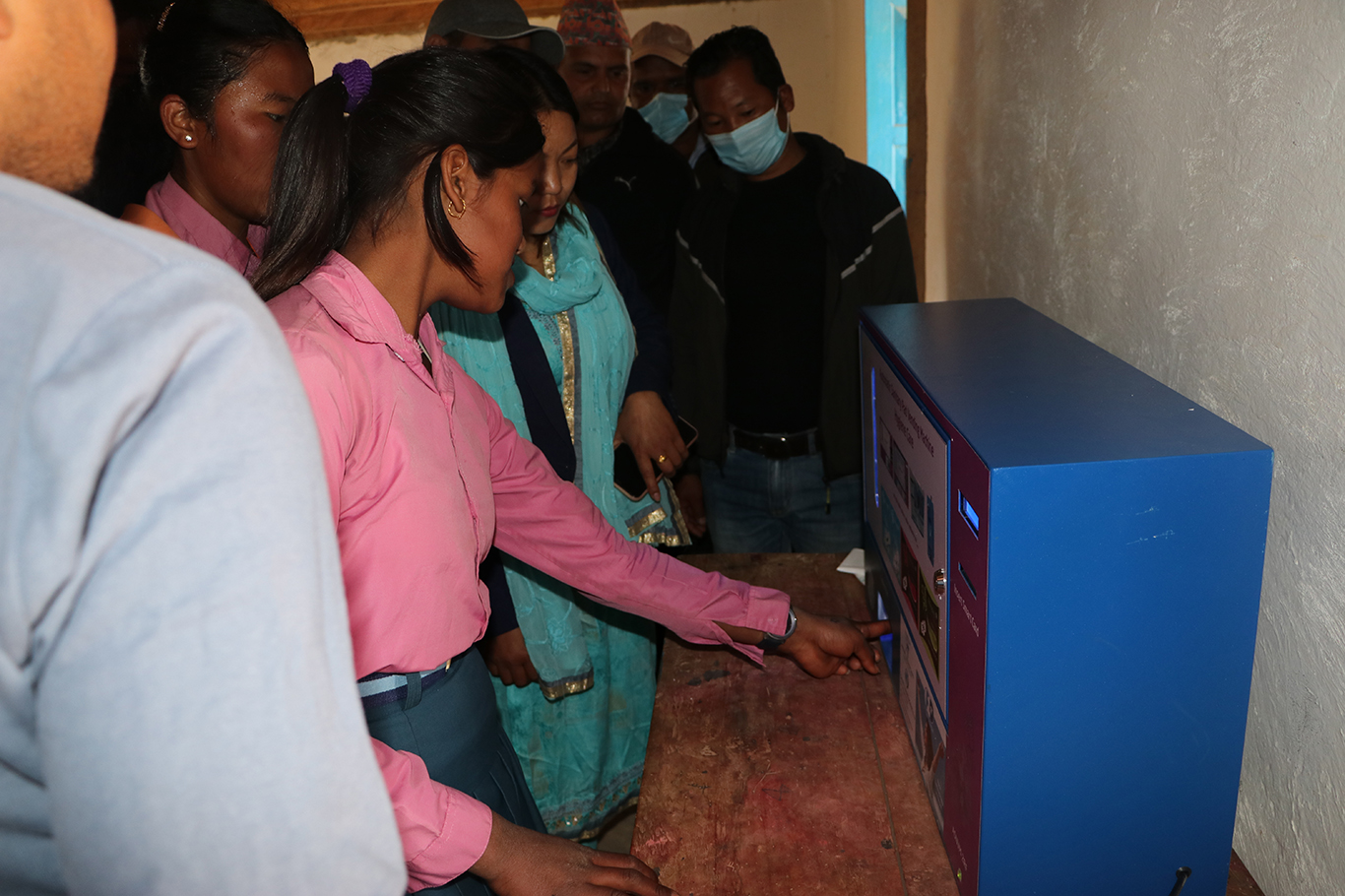दि.चु. गा. पा. वडा नं. -२ स्थित महेन्द्रोदय मा.वि. र वडा नं. -७ स्थित श्री कृष्ण मा.वि मा अटोमेटिक सेनिटरी प्याड भेन्डिङ मेसिन जडान गर्दै गाउँपालिका उपाध्यक्ष श्री सपना राई ज्यु, वडा सदस्य तुलस राई साथमा गाउँ पालिका कर्मचारीहरु ।