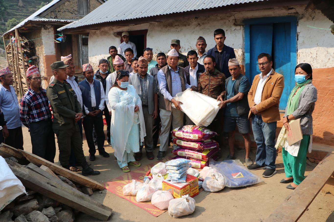 ५ नं वडा स्थित अग्नि पीडितहरुलाई गाउँपालिकाद्वारा राहत वितरण