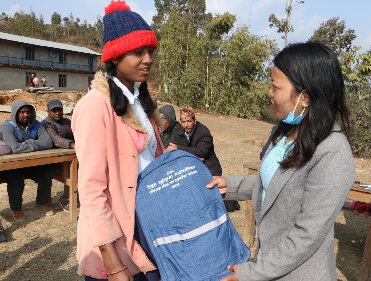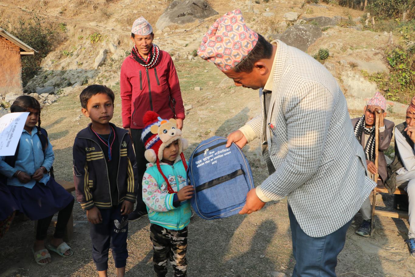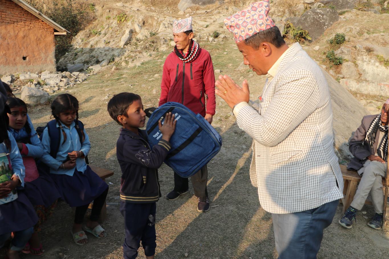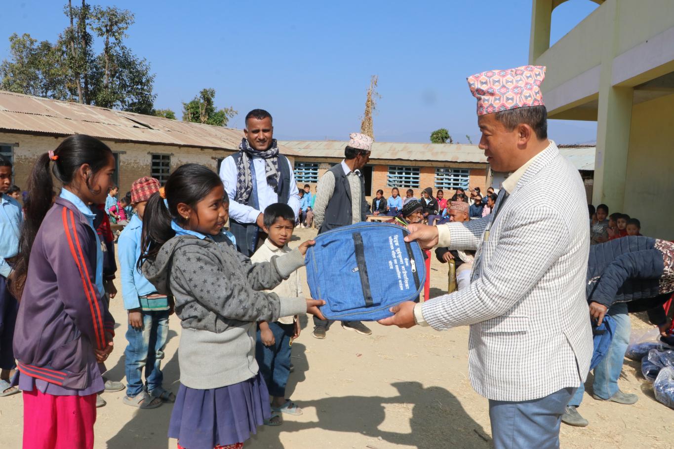 आज मिति २०७७ साल माघ ६ गते दिप्रुङ चुइचुम्मा गाउँपालिकाले पालिका संग महिला कार्यक्रमको दलित तथा फरक क्षमता भएका विद्यार्थीहरूलाई पुस्तक बोक्ने झोला वितरण कार्यक्रम अन्तर्गत दिप्रुङ चुइचुम्मा गाउँपालिका वडा नं. ४ स्थित श्री जनता मा.वि. बतासेका ७० जना(फरक क्षमता भएको-१ जना, दलित-६९), श्री राम्चे निकेतन निकेतन मा.वि. ईजारा बतासेका २९ जना(फरक क्षमता भएको-१ जना, दलित-२८ जना), श्री पञ्चकौशिका मा.वि. भन्डारेघाटका ५ जना(फरक क्षमता भएको-१ जना, दलित-४जना), श्री महेन्द्रतारा आ.वि. मुलाबारीका १५ जना(फरक क्षमता भएको-८जना, दलित-७ जना), श्री सहकला प्रा.वि.