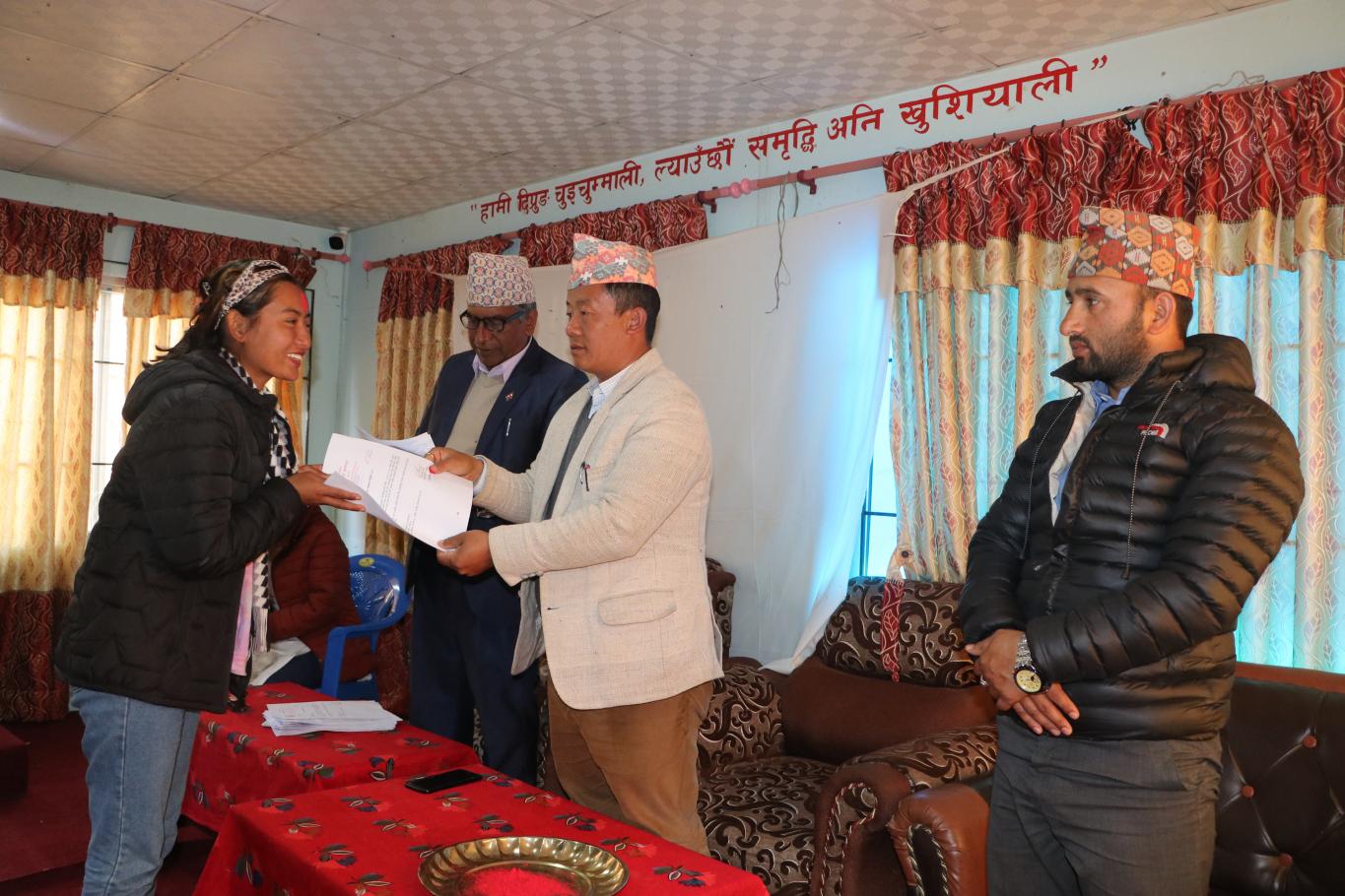 दिप्रुङ चुइचुम्मा गाउँपालिकाले विभिन्न समयमा लिइएको परीक्षामा सफल भएका स्वास्थ्य शाखाका-१० जना र कृषि तथा पशुविकास शाखाका १० जना नव नियुक्त कर्मचारीहरूलाई निर्देशन सहित नियुक्ति पत्र वितरण गर्नु हुँदै गाउँपालिका अध्यक्ष श्री भुपेन्द्र राई ज्यू ।