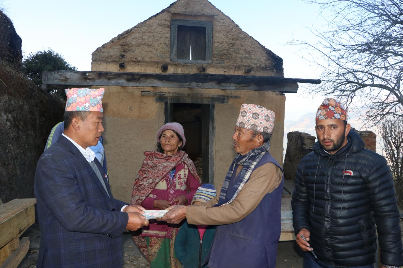 दिप्रुङ चुइचुम्मा गाउँपालिका वडा नं. ६ बास्थला छितापोखरी निवासी हरि बहादुर तामाङको घर आगलागीबाट पूर्ण क्षेति भएकोले राहत स्वरूप रू २० हजार रकम हस्तान्तरण गर्नु हुँदै गाउँपालिका अध्यक्ष श्री भुपेन्द्र राई ज्यू । सम्बन्धित वडाका वडा सदस्य श्री युवराज तामाङ ज्यू , वडा नं. ५ का वडा सदस्य श्री अमृत गिरी ज्यू लगायत स्थानियबासी समेतको उपस्थितिमा उक्त रकम हस्तान्तरण गरिएको हो । (मिति २०७७ साल पौष ३ गते)