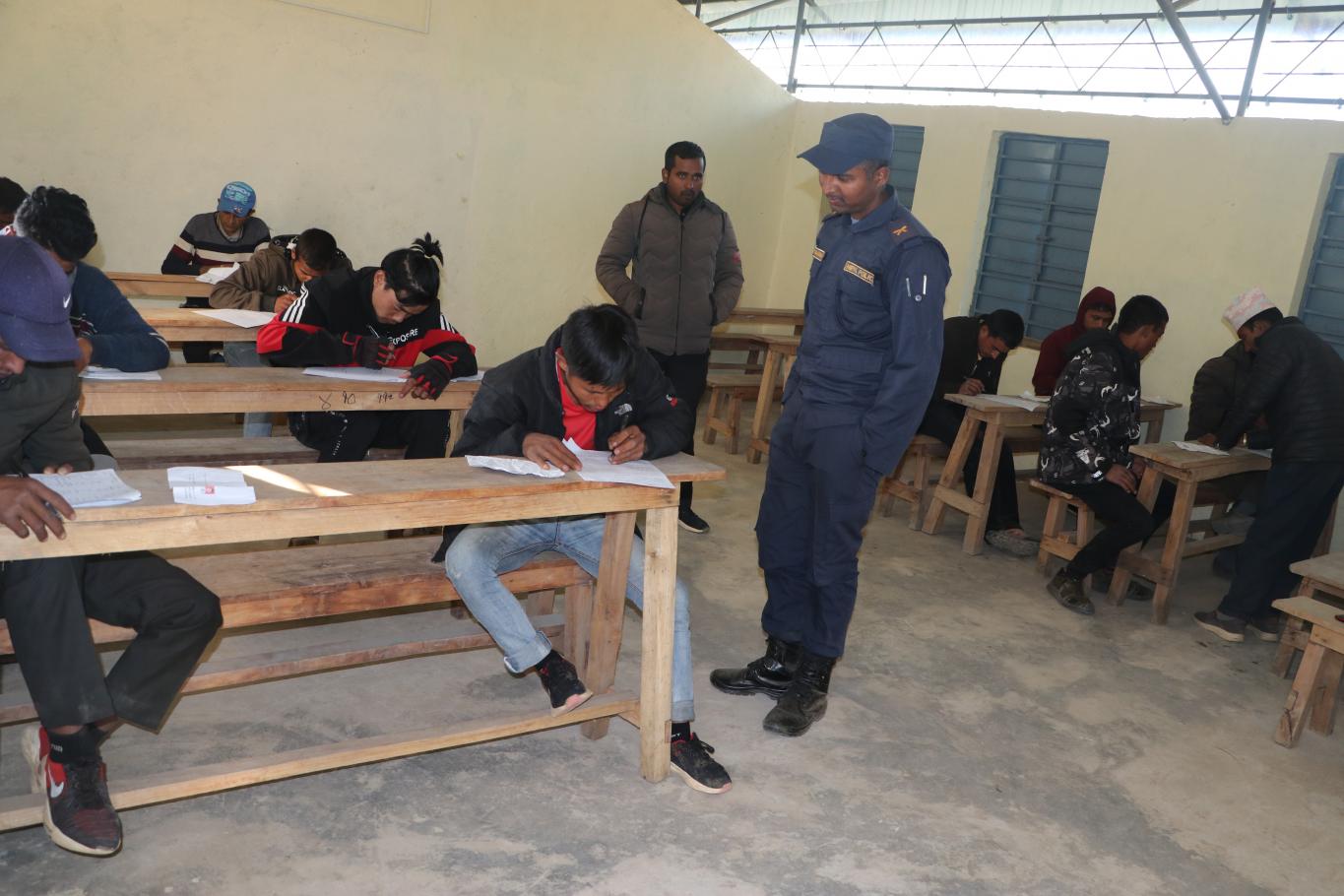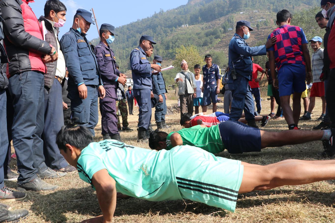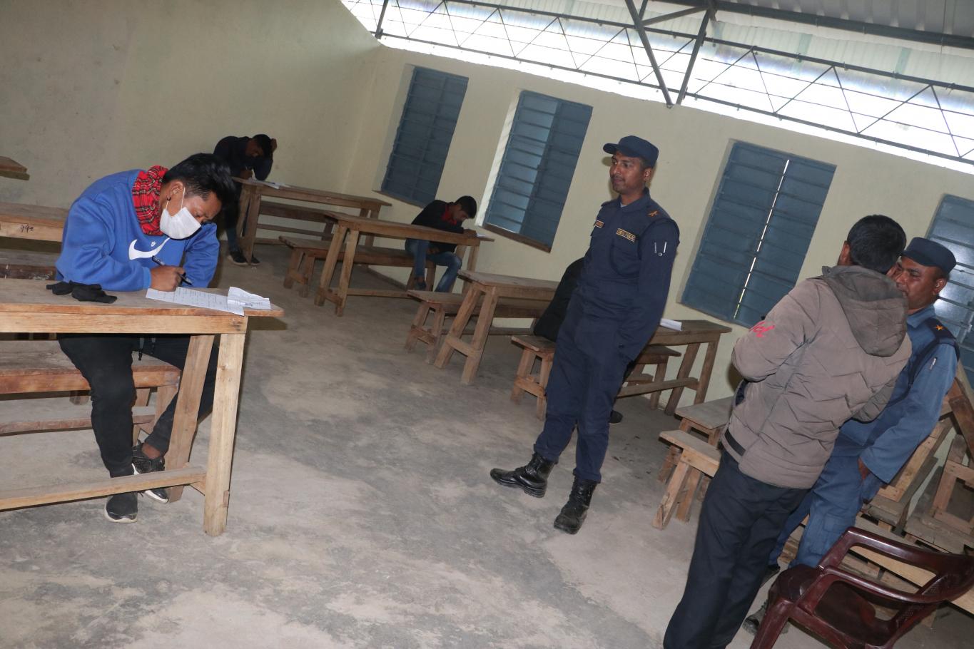 गाउँपालिका प्रहरी(हवल्दार र जवान) पदको छनौट परीक्षाको पहिलो दिन आज मिति २०७७/०९/०४ गतेका केही झलकहरू । आज उचाई, तौल, छाति, प्रेसर, तापक्रम र शारिरीक अवस्थाबारे जाँच गरिएको थियो । प्र.ह. पदमा १० जना मध्ये उपस्थित ८ जना नै दोस्रो चरणको लागि सफल भएको र प्र.ज. पदमा ४५ जना मध्ये उपस्थित २९ जनामा १ जनाको उचाई मापदण्ड अनुरूप नभएको र बाँकी २८ जना मात्र दोस्रो चरणको लागि सफल भएको जानकारी गराइन्छ ।