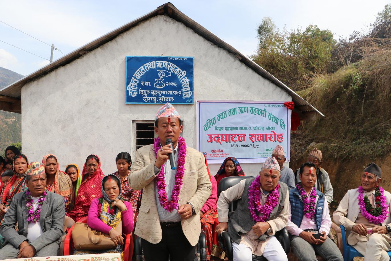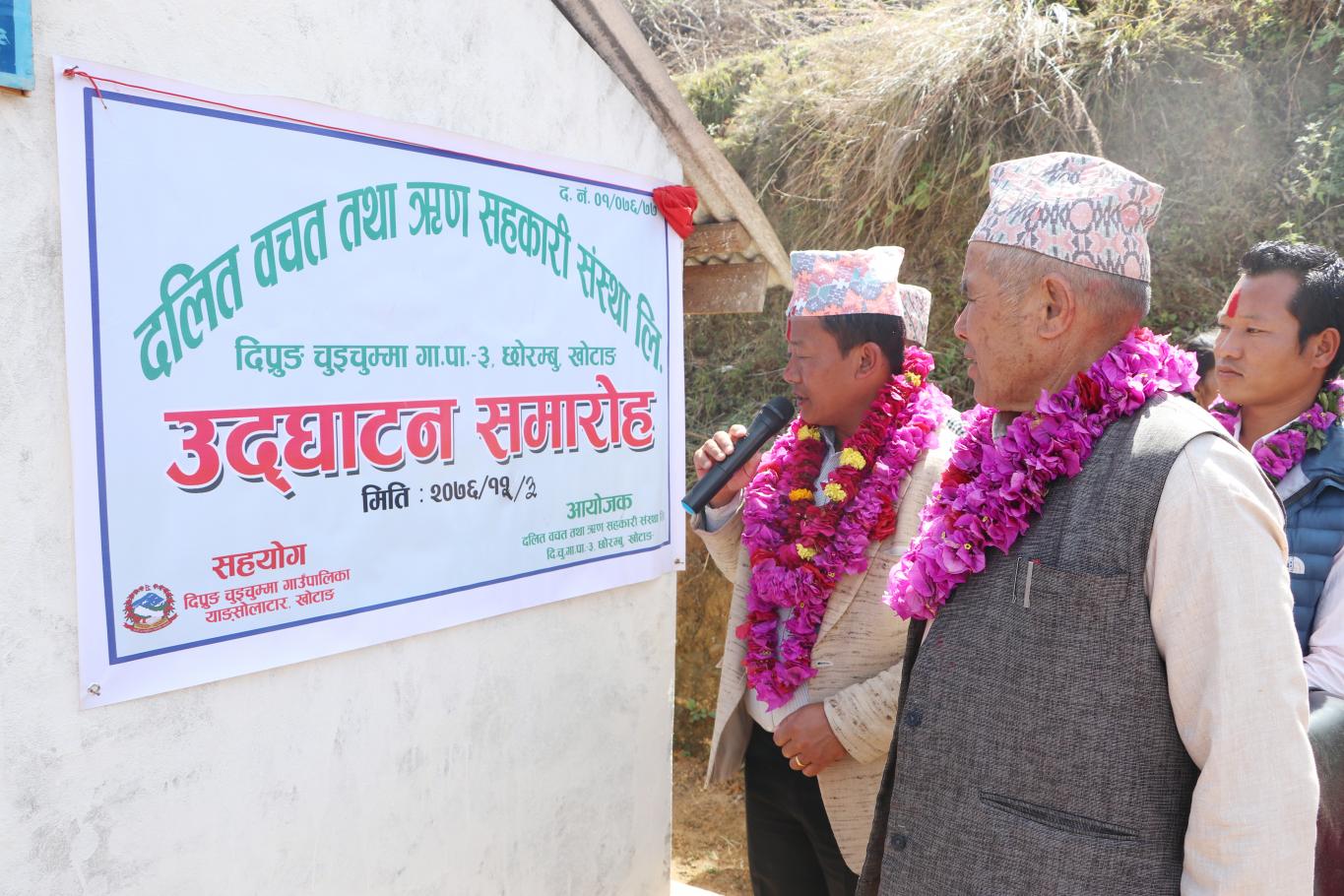 दिप्रुङ चुइचुम्मा गाउँपालिकाको आ.व. २०७६।०७७ को वार्षिक कार्यक्रम " एक वडा एक दलित सहकारी " संस्था अन्तर्गत वडा नं. ३ छोरम्बुमा दलित वचत तथा ऋण सहकारी संस्था गाउँपालिका अध्यक्ष श्री भुपेन्द्र ज्युको प्रमुख आतिथ्यतामा उद्घाटन भएको छ । श्री पदम बहादुर परियारको अध्यक्षतामा ७ सदस्यीय सन्चालन समिति रहेको यस संस्थामा ४२ वटा शेयर संख्या र ३० घर धुरी रहेको छ । गाउँपालिकाको ५० हजार बिउ पुँजी रहेको यस संस्थाको बिउ पुँजी सहित शेयर र बचत गरी जम्मा रु ७१,१२०।- आर्थिक पुँजी रहेको छ ।