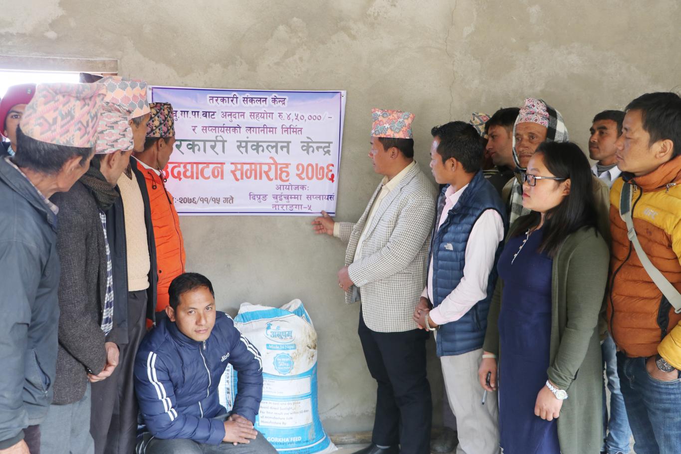 दिप्रुङ चुइचुमा गाउँपालिकाको रु ४ ,५०,०००।- अनुदान सहयोग र दिप्रुङ चुइचुम्मा सप्लायर्सको सयुक्त लगानीमा दिप्रुङ चुइचुम्मा गाउँपालिका-५ नारांगामा निर्मित कृषि उपज संकलन केन्द्रको उद्घाटन गाउँपालिका अध्यक्ष श्री भुपेन्द्र राई ज्यु को प्रमुख आतिथ्यतामा मिति २०७६/११/१५ गते सम्पन्न भएको छ । भण्डारण क्षमता बढी भएका कृषि उपजहरु ( जस्तै मास,बोडी ,भटमास ,आलु ,अलैची, बेसर ,अदुवा ,सुन्तला ,कागती ,मह ,अम्लिसो ,स्याउ ,किवी ,गुन्द्रुक ,सिन्की , खुर्सानी ,प्याज ,फर्सी ,काक्रा ,आप ,लिची ,आरु ,नासपाती आदि इत्यादि ) यस संकलन केन्द्रमा लगेर कृषिकहरुले आफुले उत्पादन गरेका कृषि वस्तुहरु बिक्रि वितरण गर्न सक्नुह