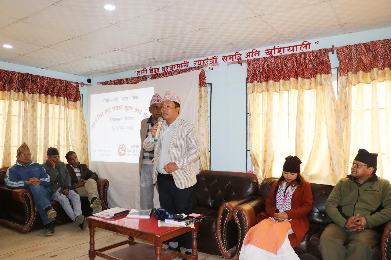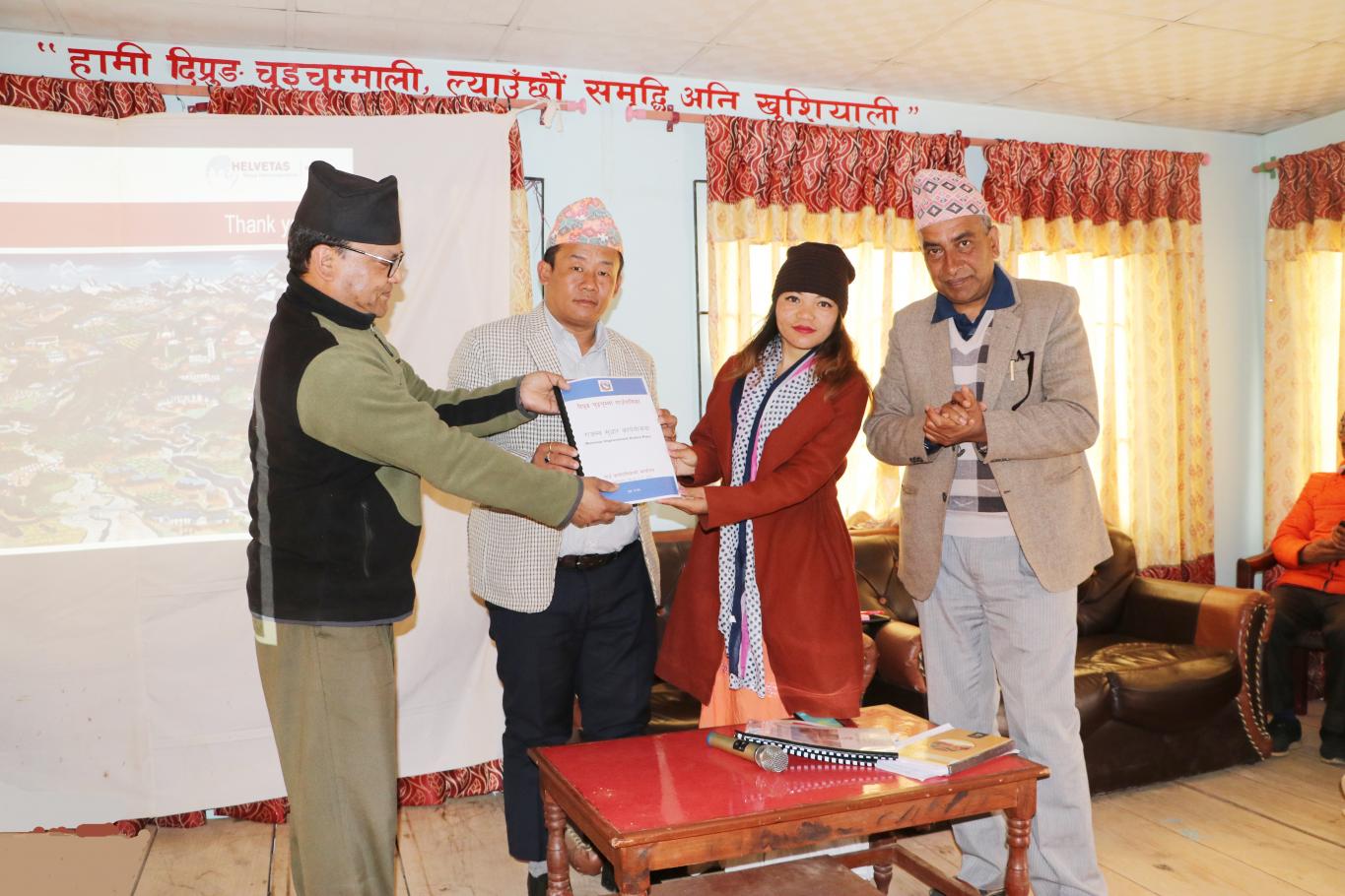 हेल्भेटास नेपालको प्राविधिक सहयोगमा निर्मित आवधिक गाउँ विकास योजना,पार्श्व चित्र र राजस्व सुधार सम्बन्धि कार्ययोजना दिप्रुङ चुइचुम्मा गाउँपालिका अध्यक्ष श्री भुपेन्द्र राई ज्यु र उपाध्यक्ष श्री सपना राई ज्युलाई हस्तान्तरण गर्नु हुदै हेल्भेटास नेपालका प्रतिनिधि श्री बद्री मानन्धर ज्यु । दिप्रुङ चुइचुम्मा गाउँपालिका हेल्भेटास नेपालप्रती हार्दिक आभार प्रकट गर्दछ ।