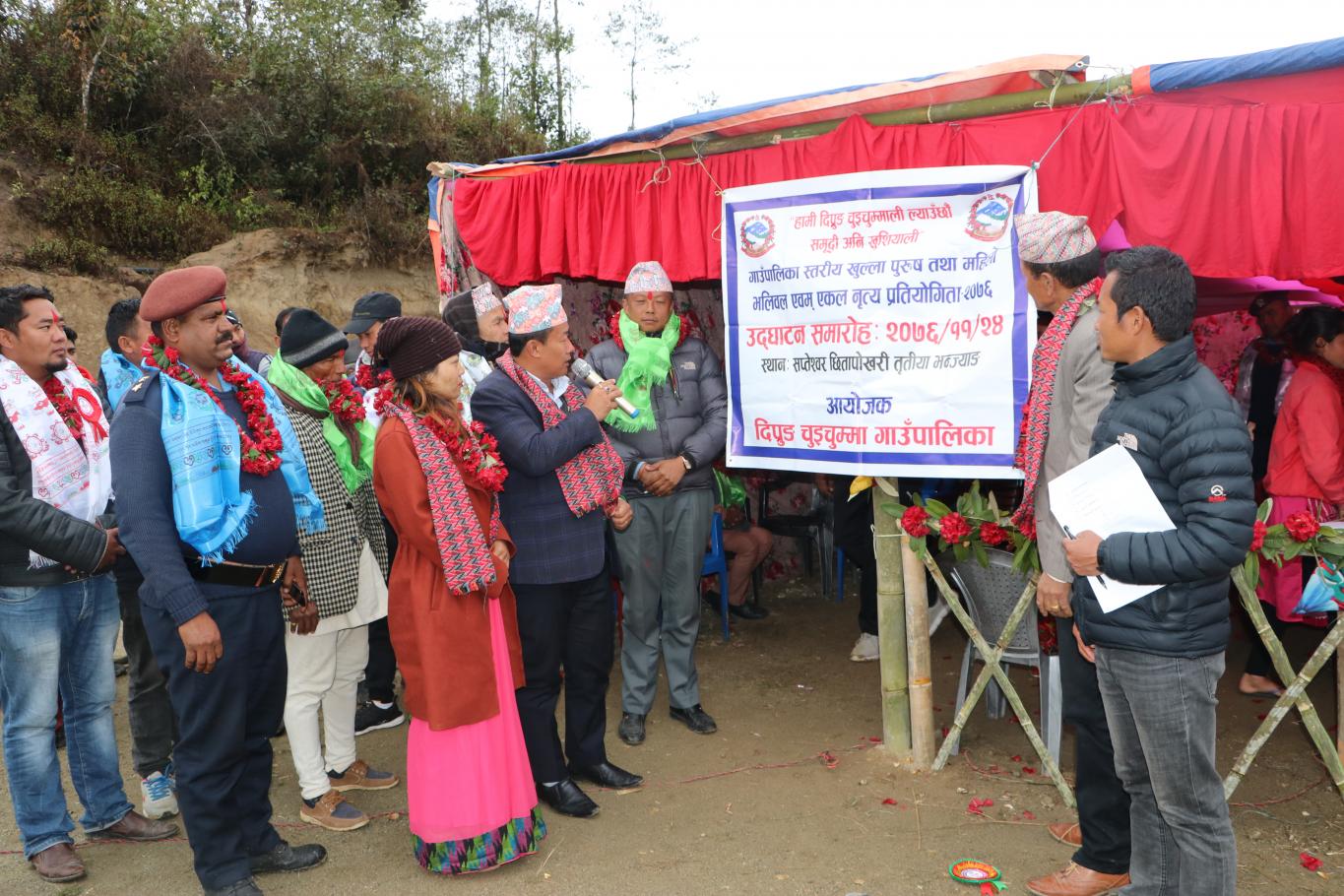 " खेल खेलौ स्वस्थ्य रहौँं, खेलको माध्यमद्धारा भाईचाराको विकास गरौं” भन्ने नाराका साथ दिप्रुङ चुइचुम्मा गाउँपालिकाको वार्षिक कार्यक्रम अन्तर्गत मिति २०७६ साल फागुण २४ गतेबाट शुरु भएको खुल्ला पुरुष/महिला भलिबल तथा एकल नृत्य प्रतियोगिता मिति २०७६ फागुन २७ गते सम्पन्न भएको छ । पुरुष तर्फ : (१) प्रथम - उदयपुर स्पोर्ट्स क्लव (२) द्वितीय -बेलका न.पा., रामपुर,उदयपुर (३) तृतीय -दिक्तेल रुपाकोट मझुवागढि न.पा.