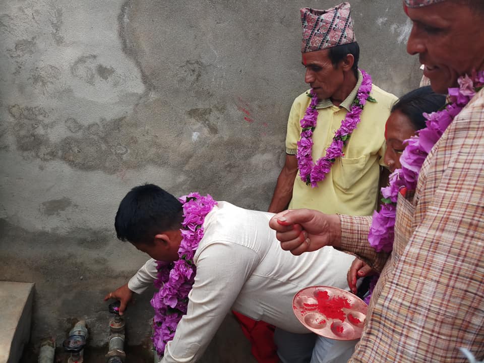 दिप्रुङ चुइचुम्मा गाउँपालिका वडा नम्बर १ याम्खामा संचालित ढाल्नेफेद टुकुरे खोला खानेपानी योजनाको उद्घाटन गर्नु हुदै गाउँपालिका अध्यक्ष श्री भुपेन्द्र राई ज्यु । ७० हजार लिटर क्षेमताको ट्याङ्की निर्माण गरि ८४ घर धुरिलाई मिटर सिस्टमद्वारा खानेपानी बितरण गरिएको छ । खानेपानीको मुहान कम र बढ्दो मागलाई मध्यनजर राखी यो प्रक्रिया अपनाइएको हो । जम्मा ४०,२८,४६८ लागतमा निर्मित उक्त ट्याङ्कीको लागि गा.पा. बाट आ.व. २०७४/७५ मा २० लाख र २०७५/७६ मा १२ लाख ५० हजार गरि जम्मा ३२ लाख ५० हजार र ७,७८,४६८ जन श्रमदान रहेको छ । यस ट्याङ्की निर्माण उपभोक्ता समितिका अध्यक्ष श्री बलजीत राई हुन् ।