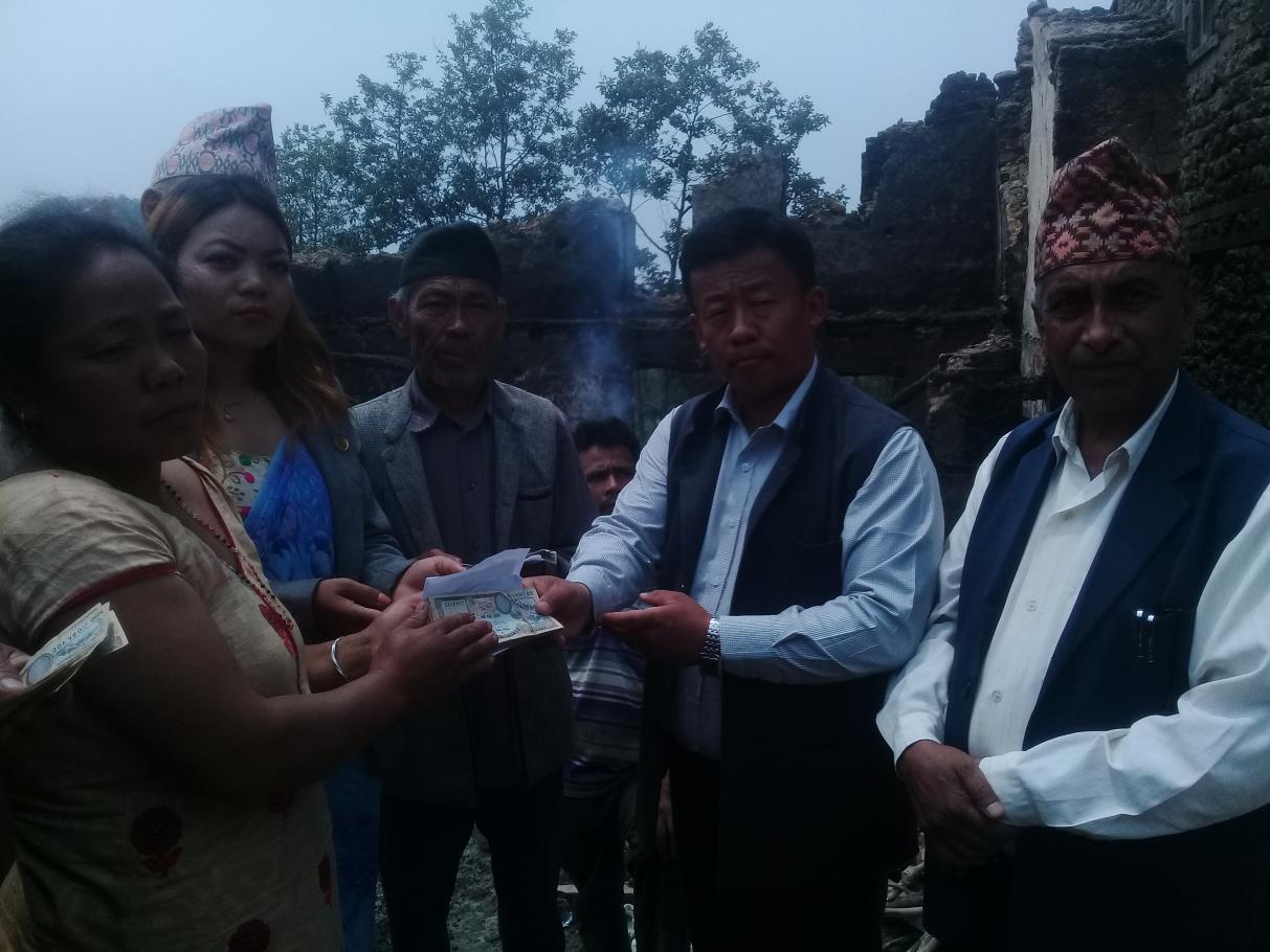 दिप्रुङ चुईचुम्मा गाउपालिका-५ स छितापोखरीको पन्चमी बजारमा हिजो बेलुका भएको आगलागीबाट डम्बर खड्काको घर पुर्ण रुपमा क्षति भएको छ र उक्त घरमा भाडामा बस्दै आउनु भएको राम केश राईलाई ५० हजार र सामान्य रुपमा क्षति भएको रबिनारायण श्रेष्ठ लाई २० हजार आज दिनको १२ बजे गाउँपालिकाले राहत वितरण गरेको छ ।