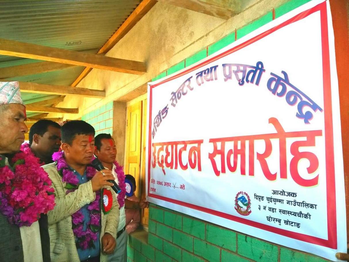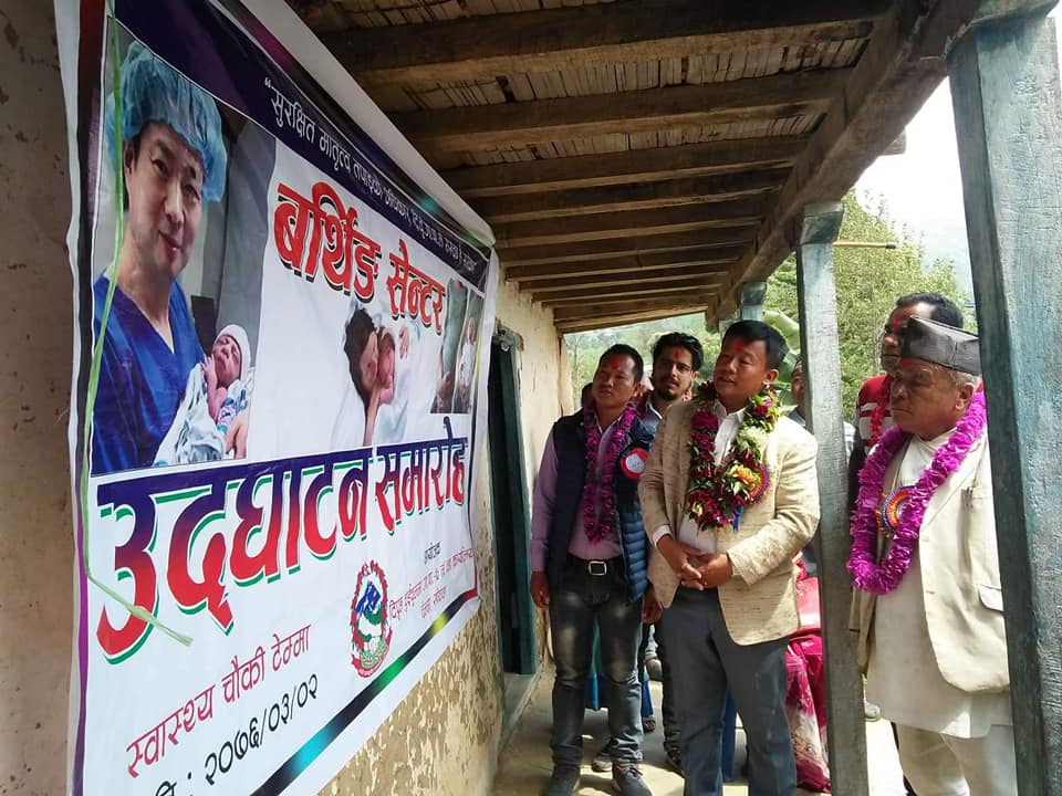 दिप्रुङ चुइचुम्मा गाउँपालिका-७ टेम्मामा बर्थिङ सेन्टर उद्घाटन(मिति : २०७६/०३/०२) गर्नु हुँदै दिप्रुङ चुइचुम्मा गाउँपालिका अध्यक्ष श्री भुपेन्द्र राई ज्यु । गाउँपालिकाले २ लाख ५० हजार बराबरको डेलिभरी बेड, सक्सन मसिन, पेरि लाइट, अटो क्लेभ , तौल मसिन, गम्बु ब्याग लगायत अन्य विभिन्न सामाग्री खरिद गरि बर्थिङ सेन्टर संचालन ल्याएको हो । हालको पुरानो ५ कोठे स्वास्थ्य चौकीको भवनमा १ कोठा बर्थिङ सेन्टर,१कोठा तालिम हल,१कोठा प्रशासन, १ कोठा मातृसेवा परिवार नियोजन खोप ओ.पि.डि. र १ कोठा स्टोर रहेको छ । नयाँ भवन भने निर्माणाधीन अवस्थामा छ ।