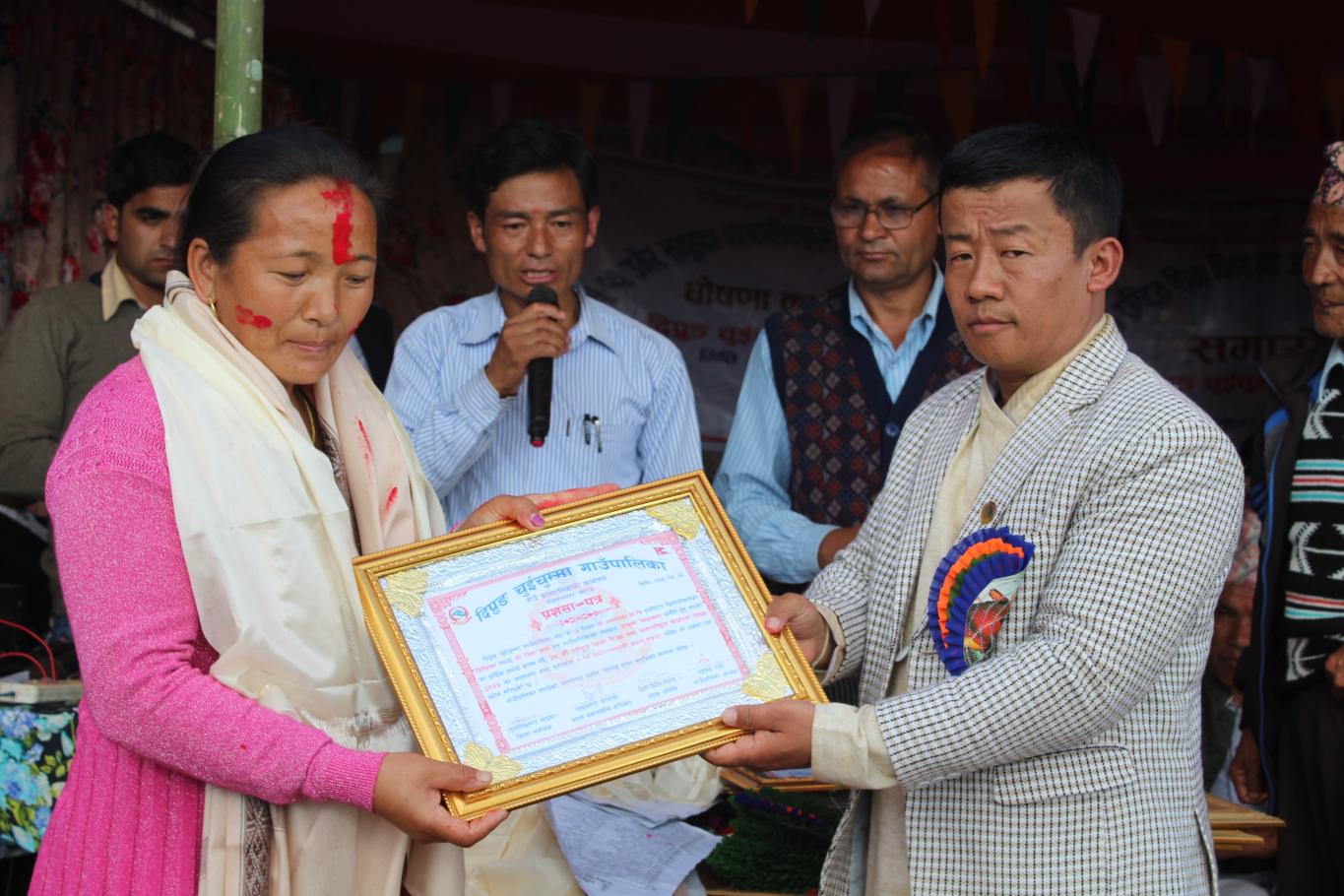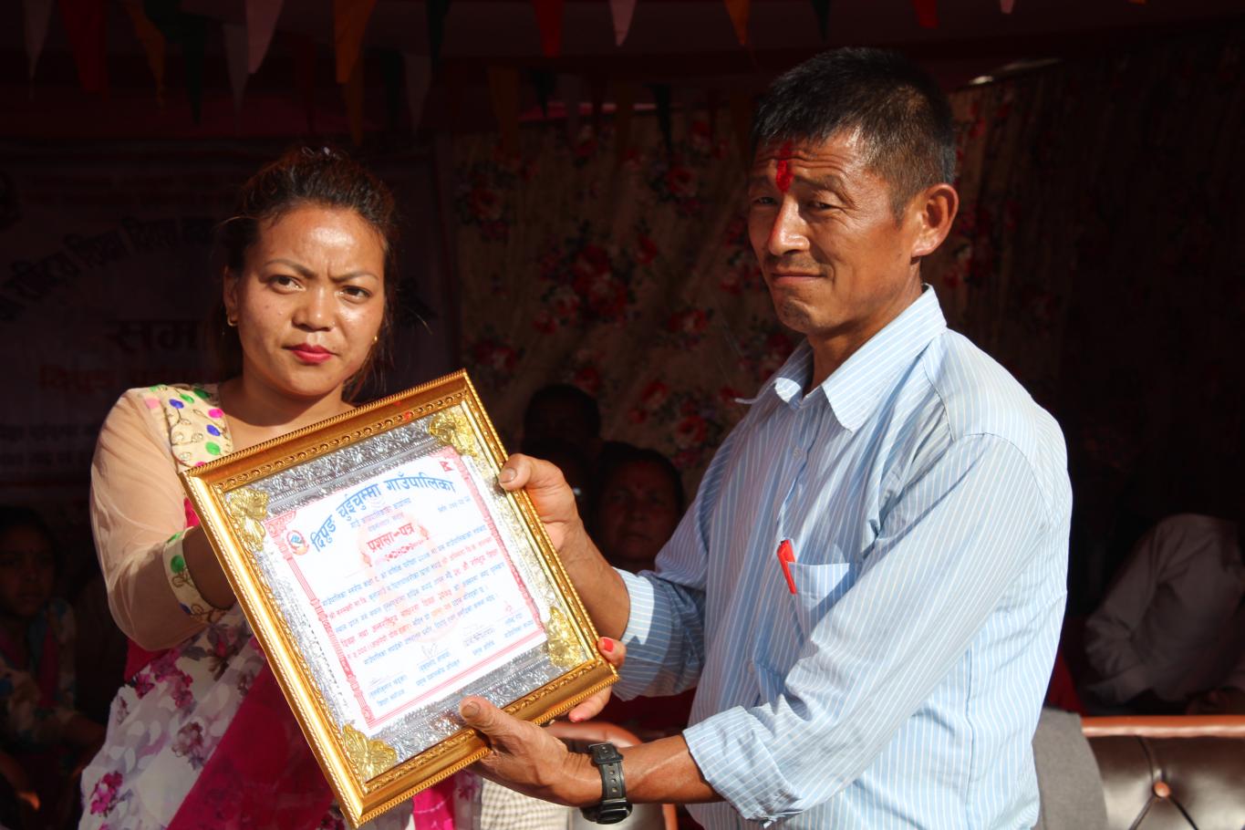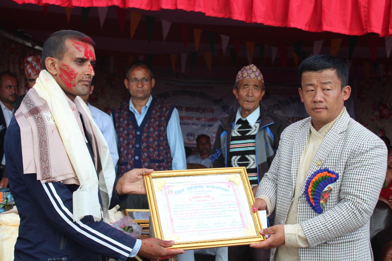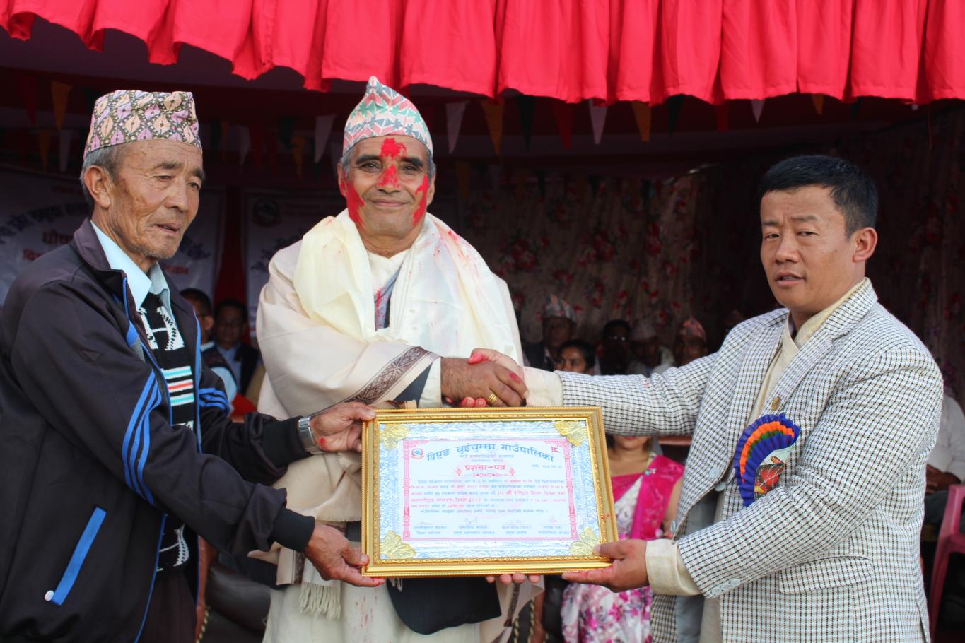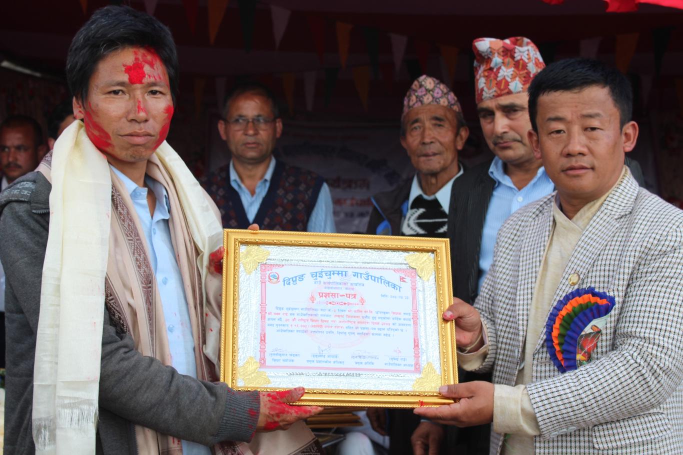 खुल्ला कबिता तथा नृत्य प्रतियोगिताको बिजेता साथै जेष्ठ नागरिक समाज सेबि दल बहादुर राईलाई सम्मान गर्नु हुँदै दिप्रुङ चुइचुम्मा गाउँपालिका अध्यक्ष श्री भुपेन्द्र राई ज्यु