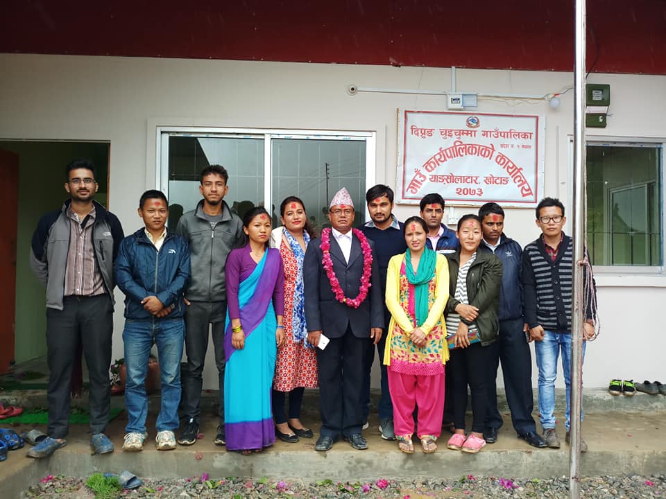 दिप्रुङ चुईचुम्मा गाउपालिका खोटाङ ले आफ्नो भबन सम्पन गरि आज बाट आफनै भबनमा प्रबेस गरेको छ । पालिका प्रमुख भुपेन्द्र राई ले बिहान ७:बजेर ३ मिनेटमा रिबन काटी उद्घाटन गर्नु भएको हो।