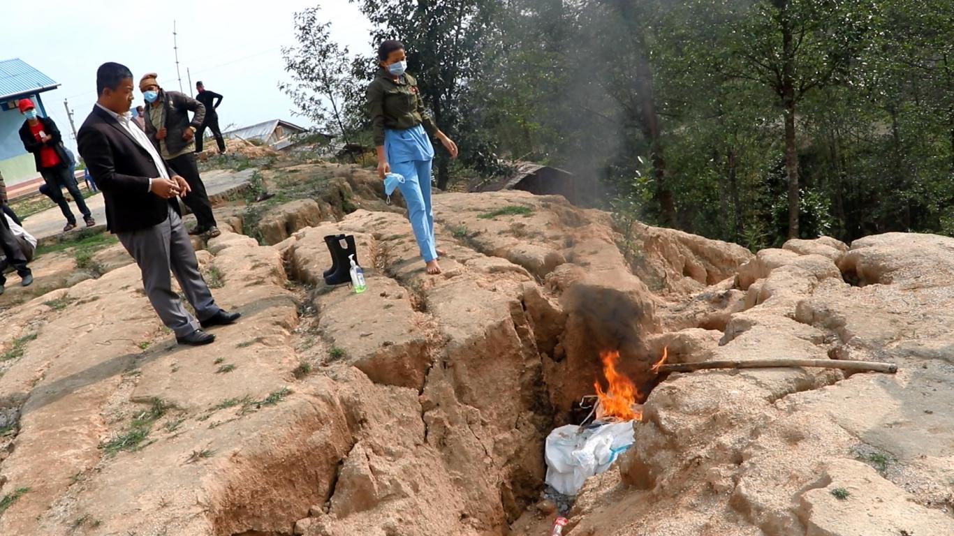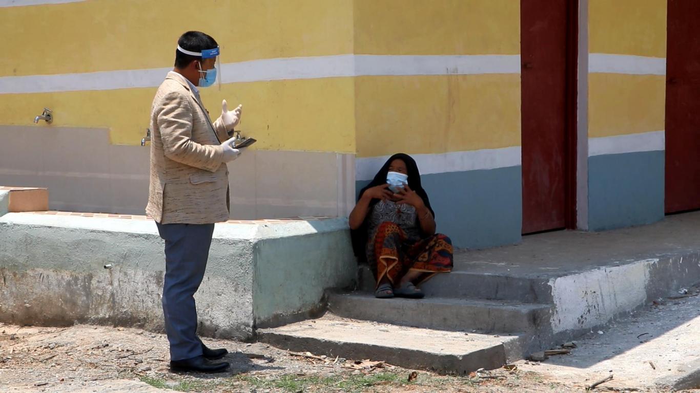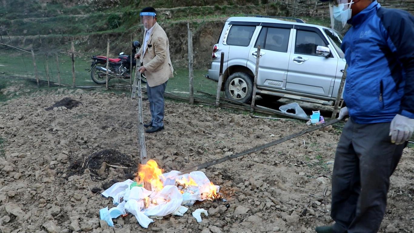 दिप्रुङ चुइचुम्मा गाउँपालिका वडा नं. १ खामडाँडाकी कोभिड-१९ संक्रमित सिकिस्त विरामी ८८ वर्षिय धन कुमारी अधिकारीलाई आफ्नो पिठ्युँमा बोकी कोभिड अस्थायी अस्पताल लानु हुँदै गाउँपालिका अध्यक्ष श्री भुपेन्द्र राई ज्यू ।